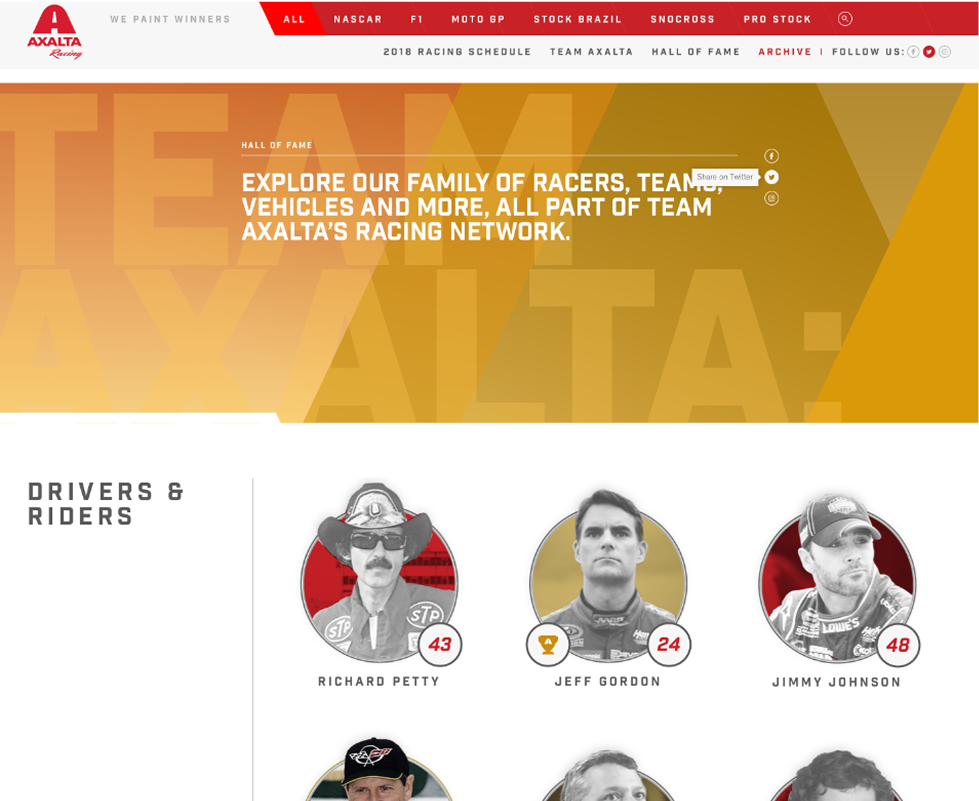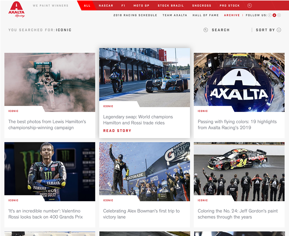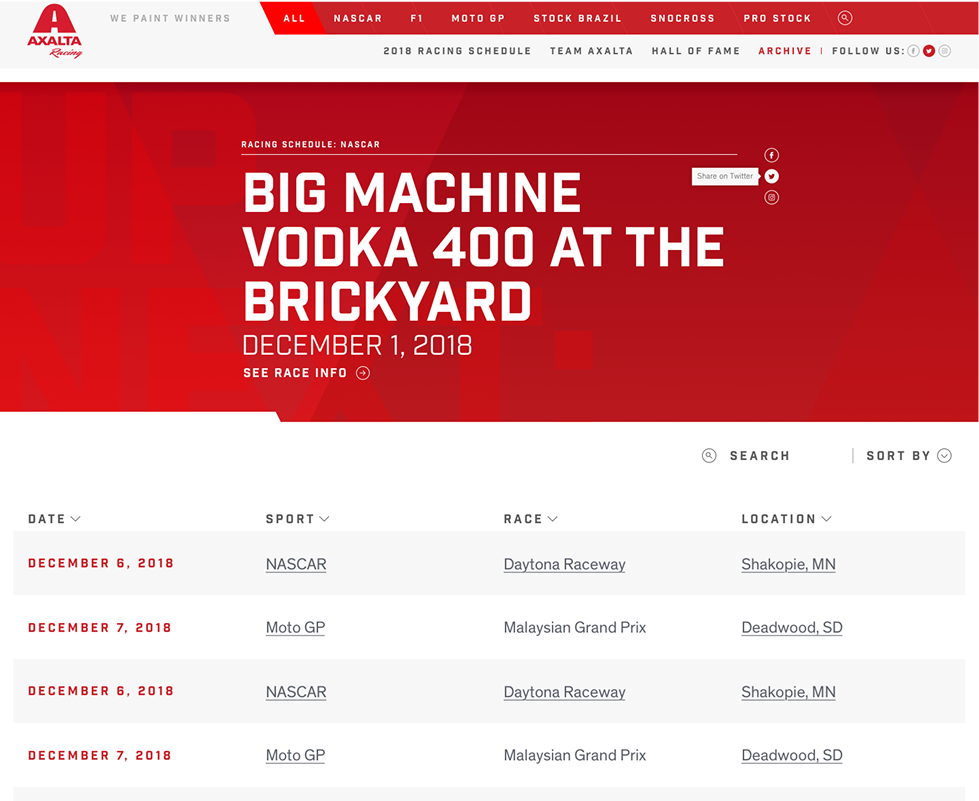 The Axalta Racing website redesign centralized Axalta’s motorsports sponsorships into a unified platform, targeting customers and fans alike. Focusing on performance, engineering, and technology, the site fosters engagement through regular content updates while aligning with Axalta’s brand. The project enhanced brand recognition and delivered a dynamic, interactive user experience.