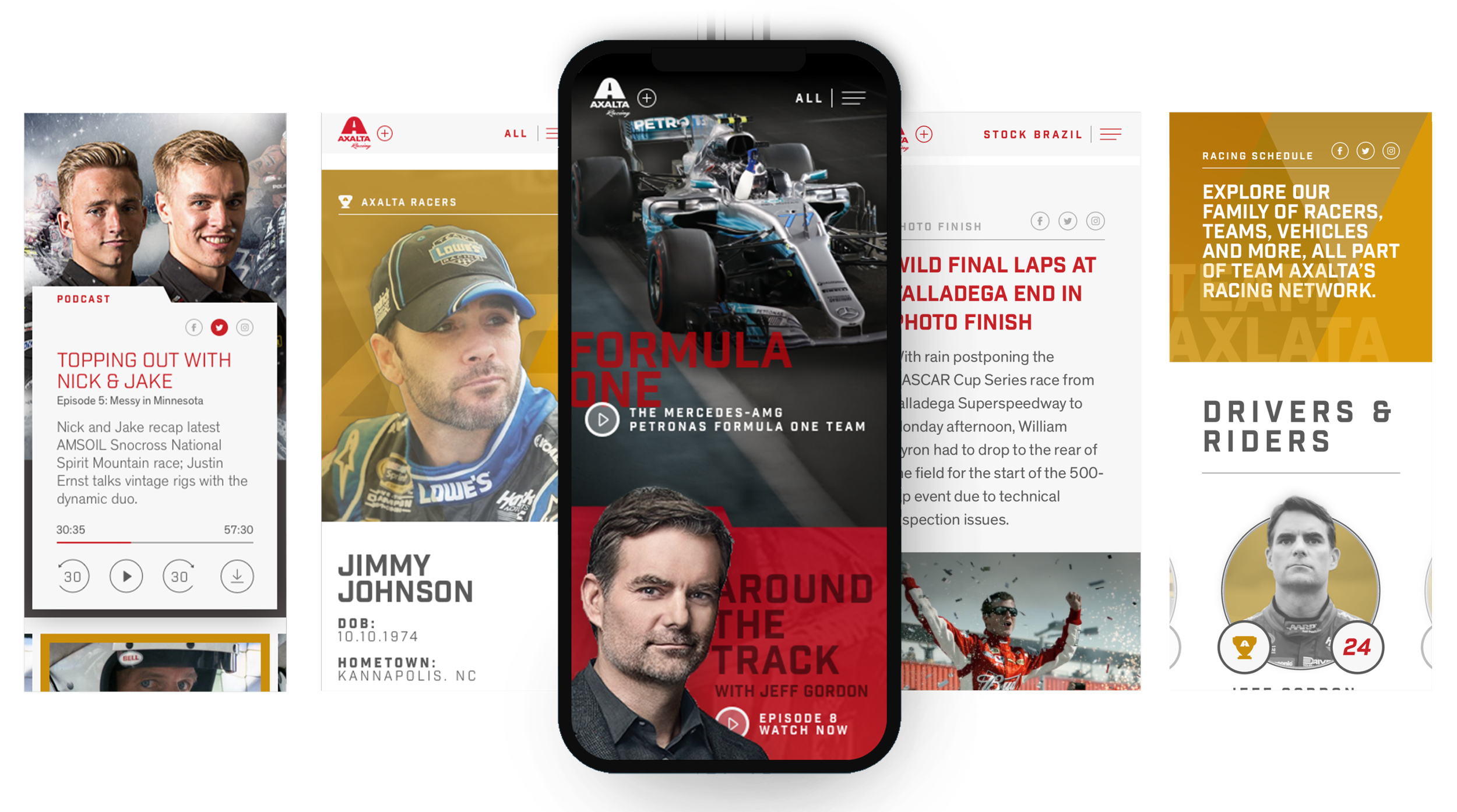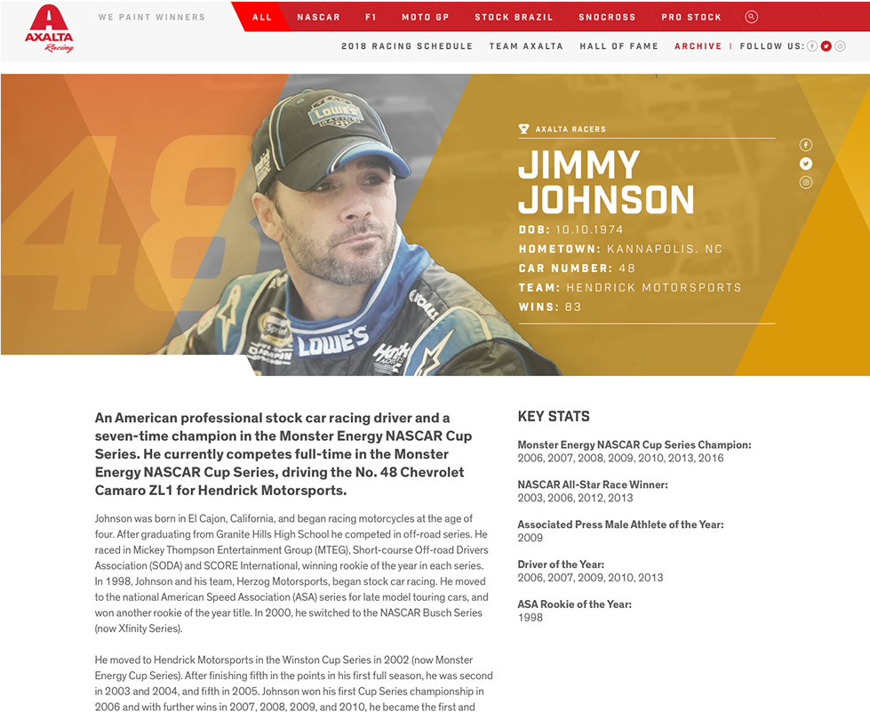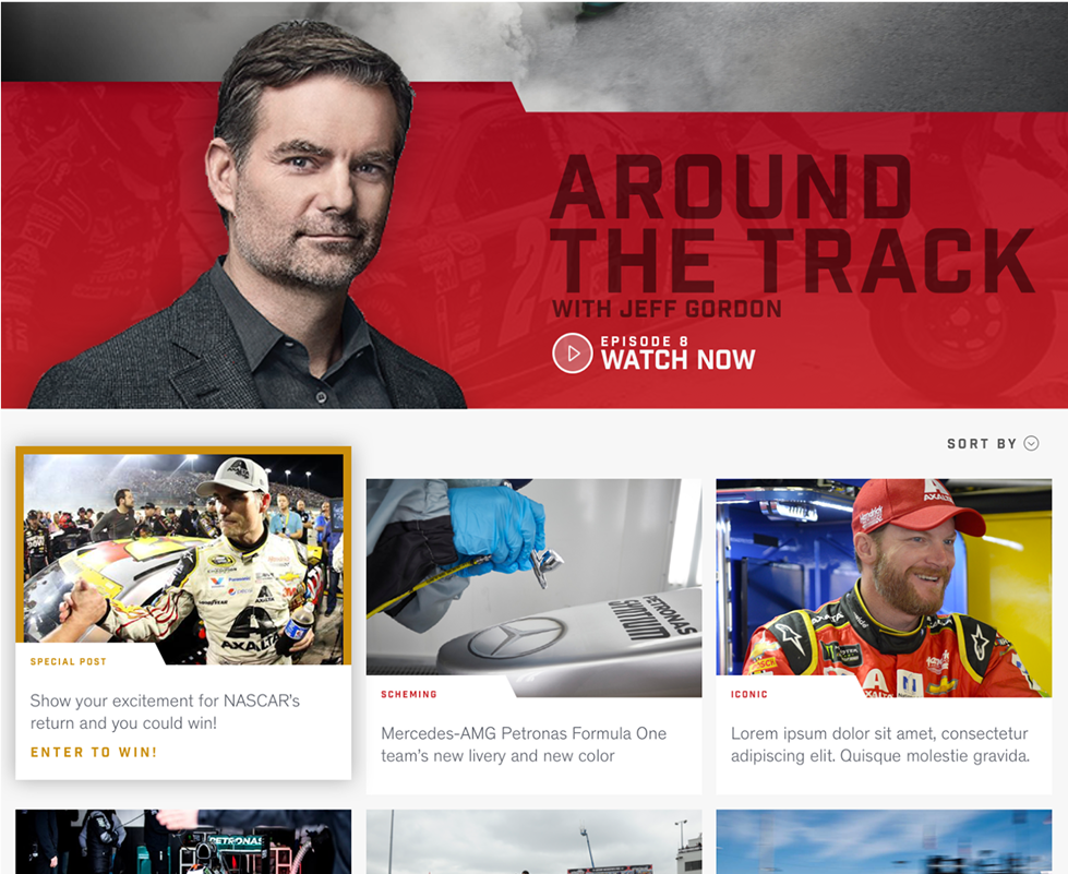 Visitors can explore the latest news across various racing formats, watch the regularly updated interview series Around the Track starring racing legend Jeff Gordon, dive into detailed driver profiles, and access up-to-date information on upcoming races.