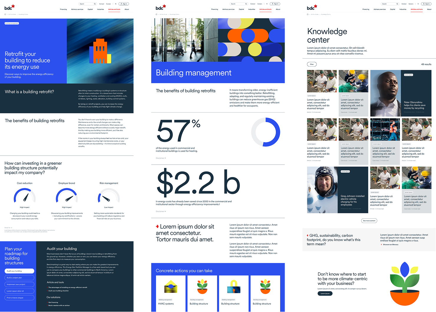 The color palette followed the principles outlined in the master BDC brand guidelines, with further refinement of the rules to suit the specific needs of the Climate Action Center.
