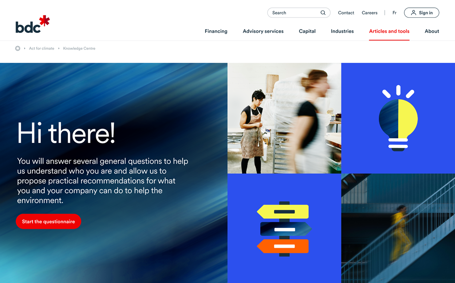 The Action Advisor is an interactive questionnaire tool designed to help users navigate and identify specific resources tailored to their business needs. By answering a series of questions, users are directed to relevant content, tools, and solutions that align with their unique challenges and goals.