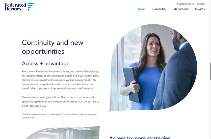 Federated Hermes is a global investment management firm known for its commitment to responsible investing and sustainability. With over 70 years of experience, the firm offers a range of investment solutions to both institutional and individual clients. By combining innovation with stewardship, Federated Hermes focuses on long-term value and integrating environmental, social, and governance (ESG) factors to drive positive global impact.