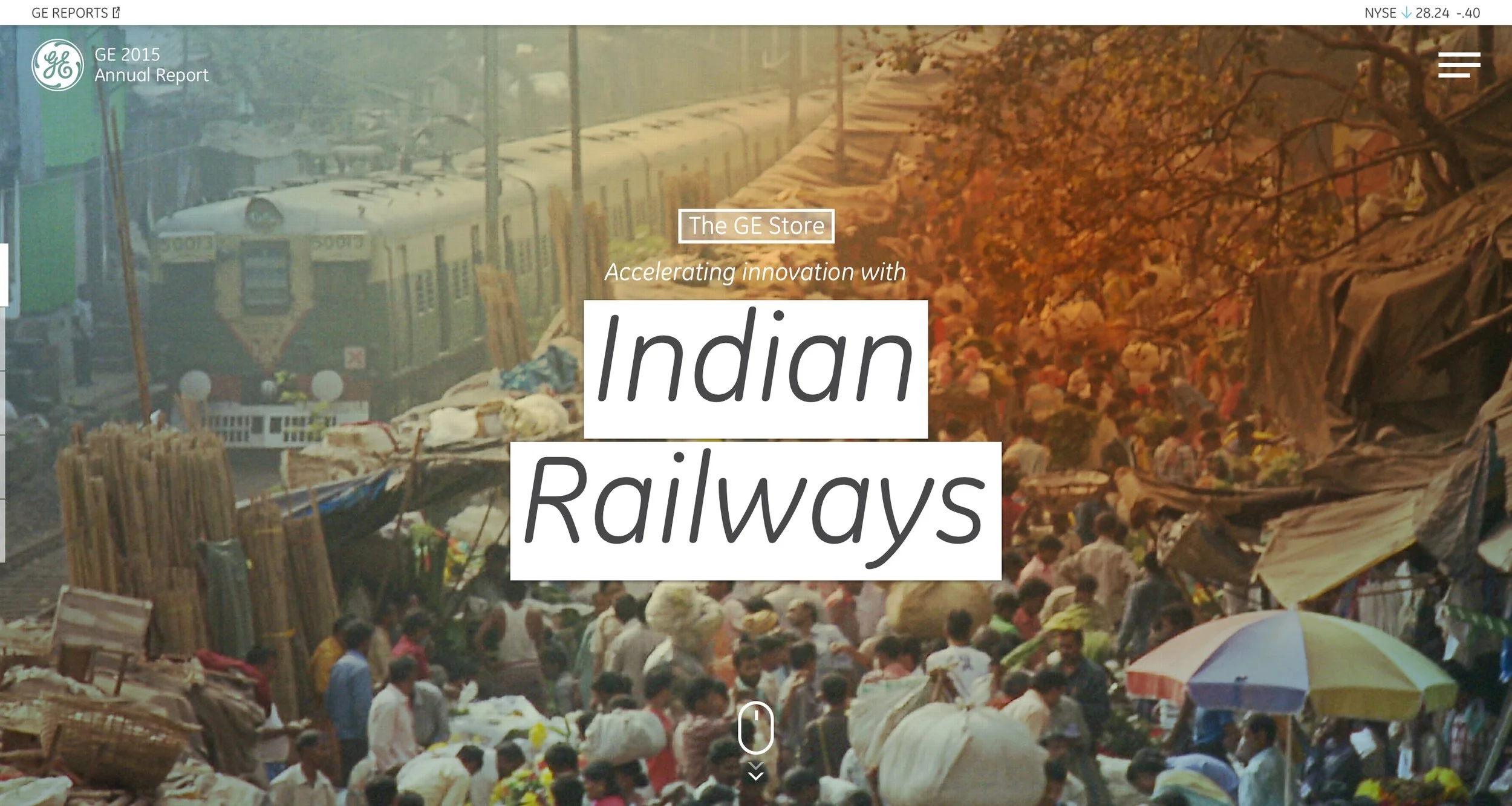 This annual report guided stakeholders through a dual-path experience, offering a choice between two compelling narratives. One path showcased GE's transformative work with India's railroad infrastructure through The GE Store, while the other highlighted how GE revolutionized the global power grid with its Digital Power Plant, all within an immersive long-scroll format.