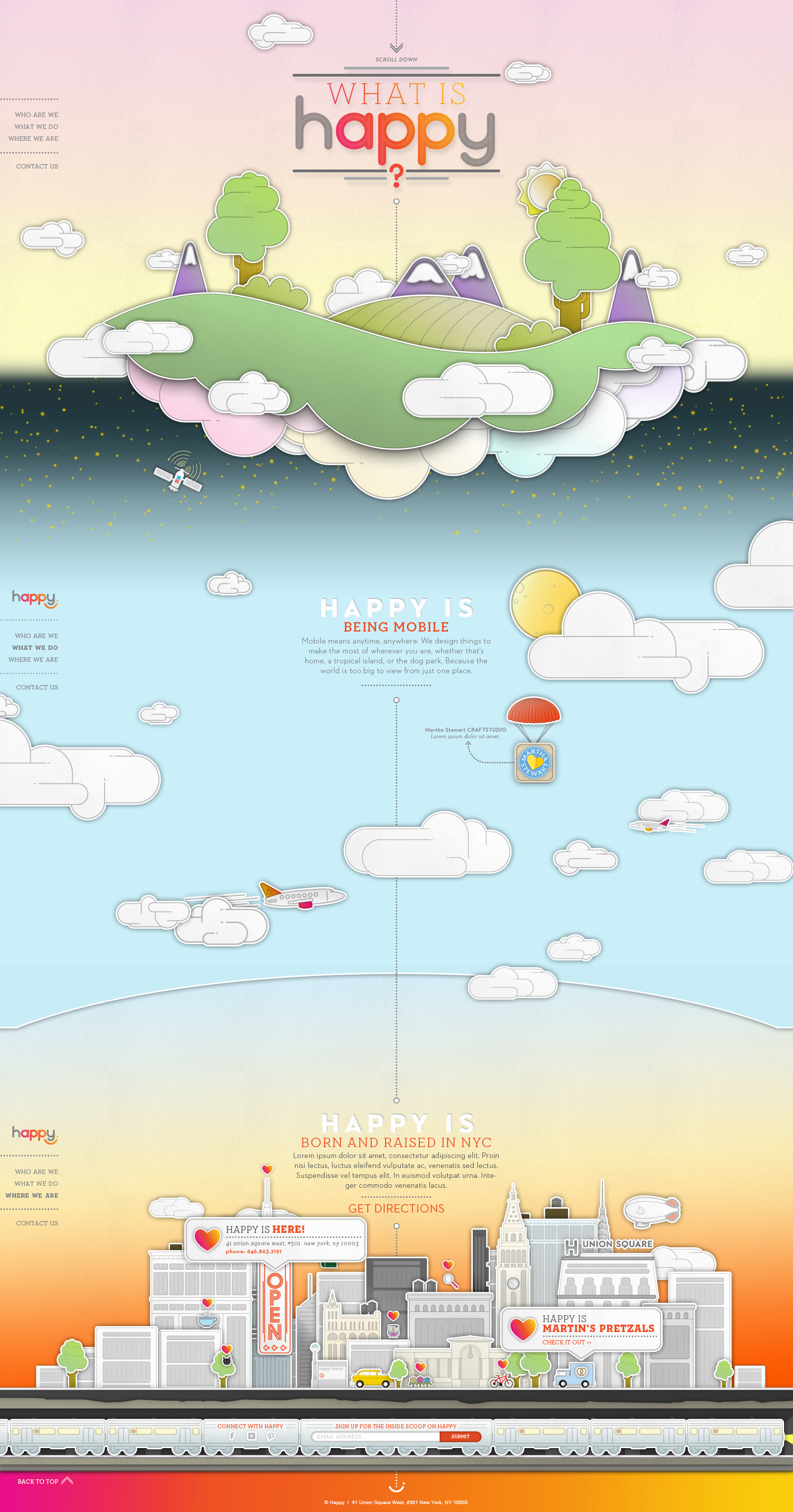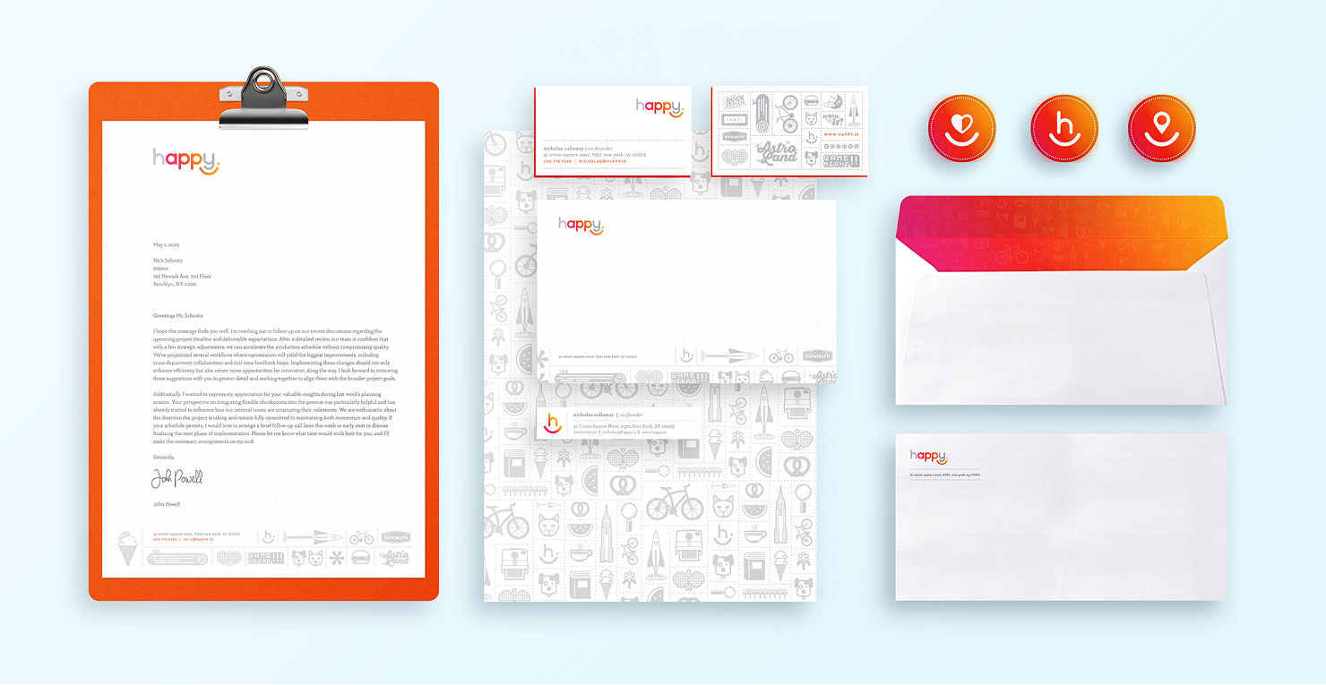 The flagship piece of the Happy identity was the website—a rich, parallax long-scroll experience filled with playful visual treats and animations. Designed to bring the brand’s spirit to life, the site served as an engaging platform to tell Happy’s story in a dynamic, memorable way.