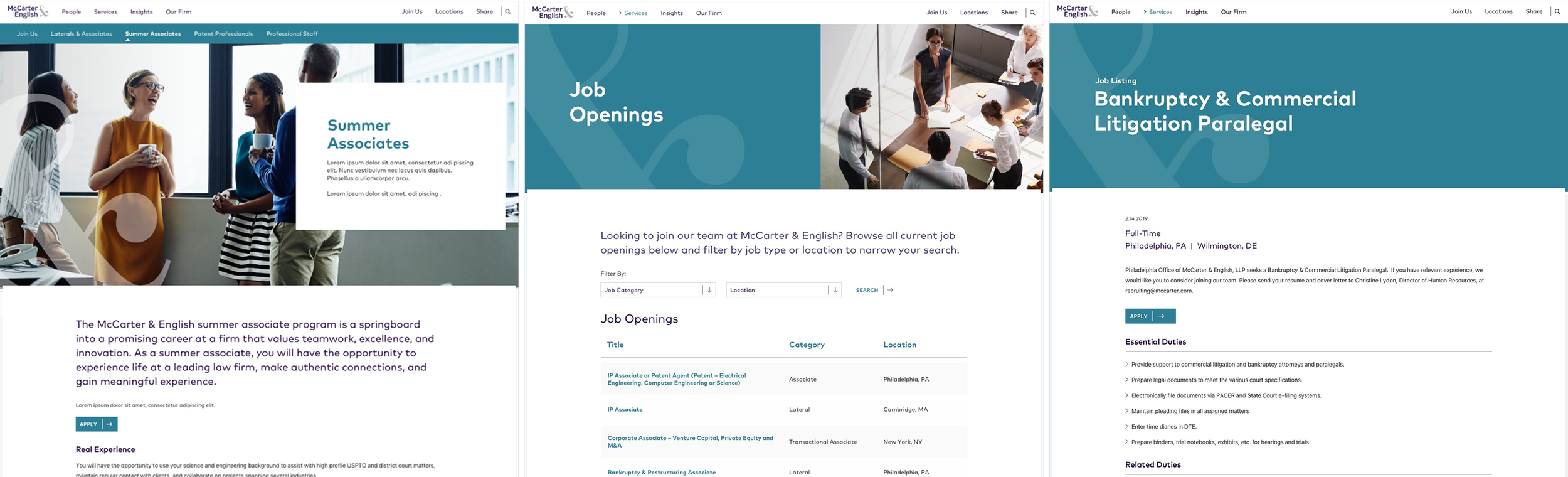 Other visitors focused on recruitment and company culture, with visitors interested in learning what it was like to work for the firm. To address this, we created a robust recruitment center.