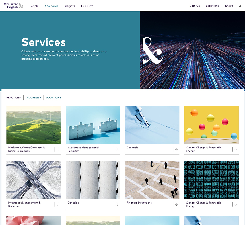 The website embodied McCarter & English's collaborative approach and strong client relationships, reflecting the integration of diverse practice areas. Balance served as a visual driver, representing the fusion of tradition and innovation.